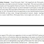Für berichterstattende Journalistinnen und Journalisten gibt es freien Eintritt zu allen Veranstaltungen der Langen Nacht der Philosophie. Bitte geben Sie bei Ihrer Anfrage den Namen Ihres Mediums, Ihre Kontaktangaben sowie die gewünschte Veranstaltung an. Anfragen bei den oben angeführten Ansprechpartnern in Ihrer Stadt oder bei überregionaler Berichterstattung an rita.steiner@treffpunkt-philosophie.de.
